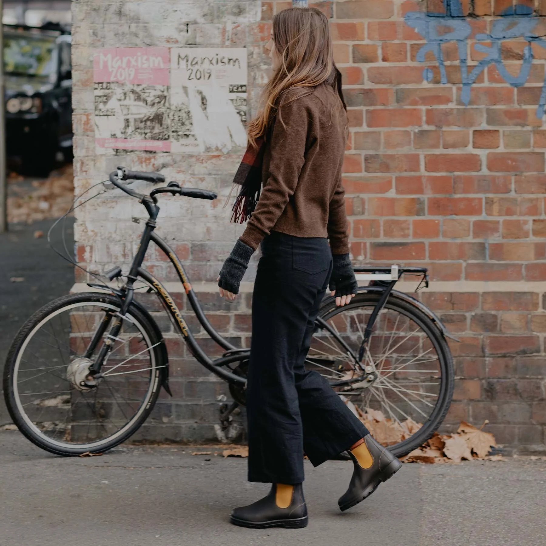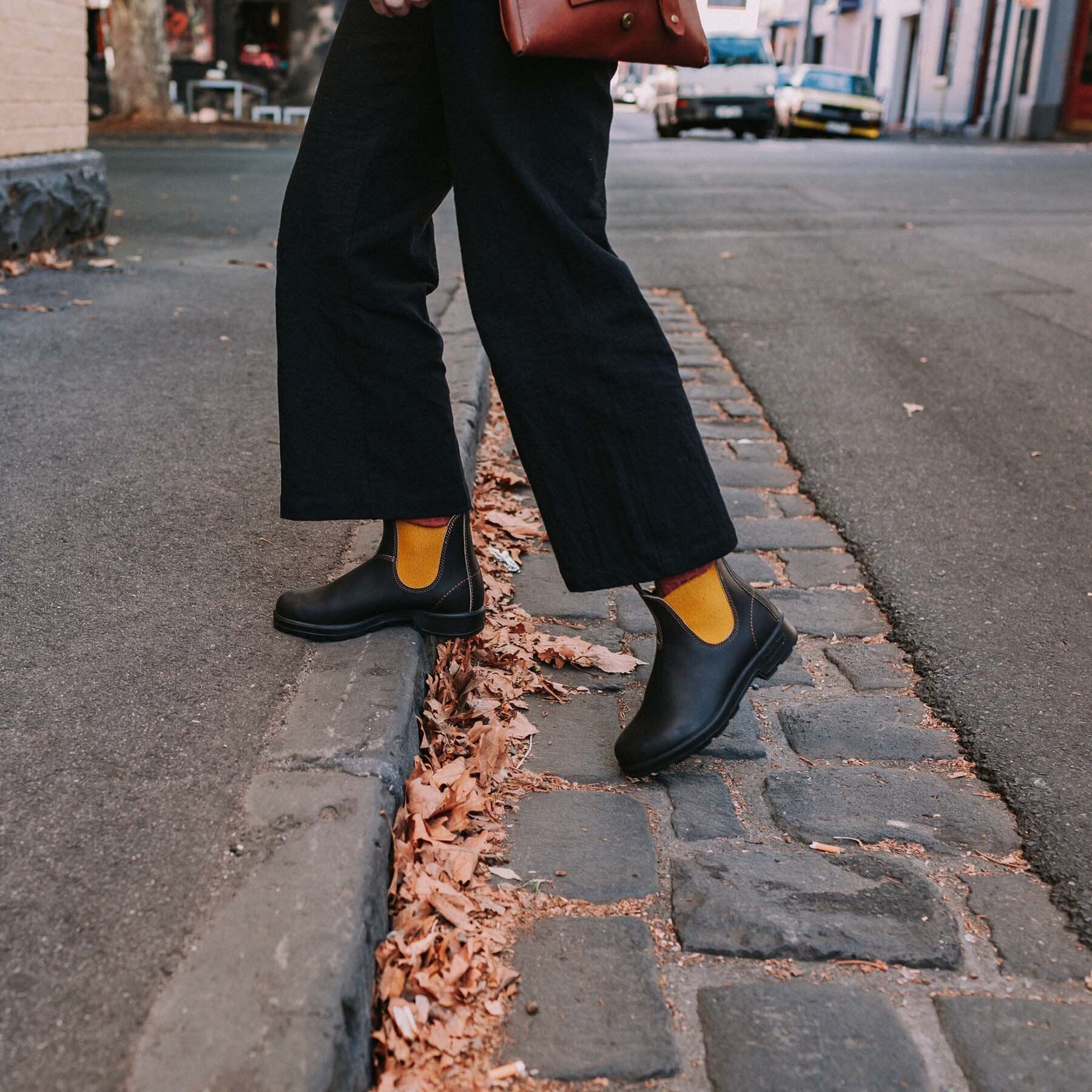 Blundstone Originals 1919 women’s boots, made with supple leather uppers in Brown leather with a Mustard side panel. A straightforward, no-nonsense boot. This contoured design ensures a close fit while the comfort levels are high with Blundstone XRD® Technology inserts in the heel and forepart of the footbed. This provides shock absorption and adds to the comfort.