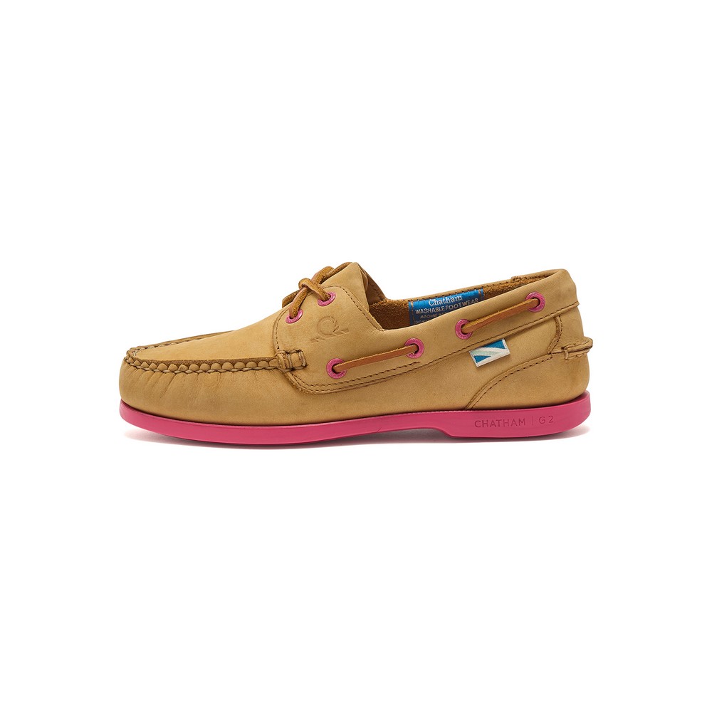 Chatham Pippa women’s Deck shoes. Crafted in premium, washable leather with a non-slip rubber sole. One of the bestselling Women’s Deck Shoes from the G2 collection is the Pippa II boat shoes. A moccasin-constructed shoe for optimal fit and handstitched on the last. The cushioned insole incorporates Poron sole Spring memory foam, which is anti-bacterial and offers maximum comfort and shock absorption.